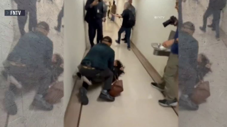 ICE has suspended an officer after new video shows him slamming a woman into a wall at a Manhattan facility. NBC News’ Priscilla Thompson reports.Sept. 26, 2025