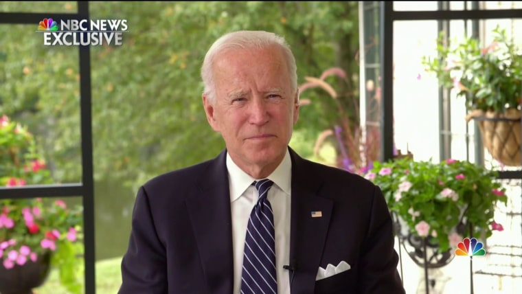 In an exclusive interview with NBC News’ Stephanie Ruhle, Democratic presidential nominee Joe Biden spoke about how he will guarantee a peaceful transition of power, the Latino vote and the first presidential debate on Tuesday.Sept. 26, 2020