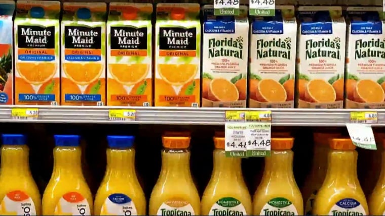 The price of orange juice, a staple on so many breakfast tables, has hit an all-time high, rising more than 50 percent this year. The reasons include extreme weather and drought in Florida and Brazil, the world's largest orange producer. NBC News' Christine Romans reports. May 31, 2024