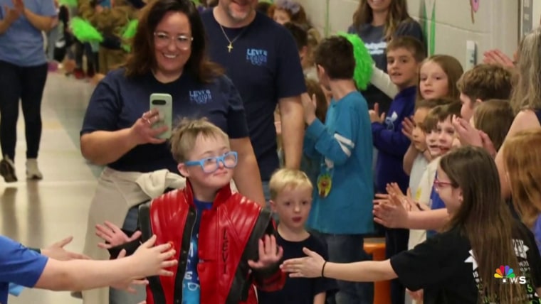 For 11-year-old Levi Buxman, who has down syndrome, it was the surprise of a lifetime when his fellow classmates at Green Elementary in Ohio greeted him with cheers and high fives to celebrate him beating leukemia, after he spent over 260 days in the hospital battling the disease. NBC Nightly News anchor Tom Llamas reports.March 31, 2026