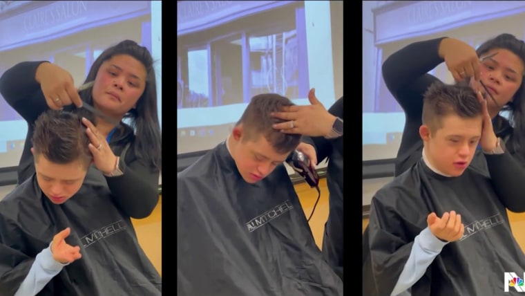 Claire Hall, a special education teacher who is also a trained hair stylist, cut her student Mason’s hair in front of the class when he needed to get ready for a big event. NBC News’ Peter Alexander has more on the act of kindness and why it meant so much to Mason and his family.March 4, 2024