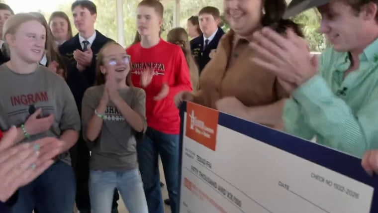 After the catastrophic flooding in Texas, students from Future Farmers of America swung into action, clearing debris and gutting homes. But their event space is still being used as a command center, leaving them without a place for their fall fundraiser or stock show. The Houston Livestock Show and Rodeo stepped up to help, surprising the students with a huge donation. NBC News’ Priscilla Thompson reports.Nov. 14, 2025