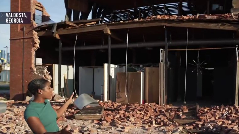 Winds of more than 90 miles per hour knocked down buildings, trees and electric lines. Up to a million lost power. NBC News' Priscilla Thompson reports from Valdosta.Sept. 28, 2024