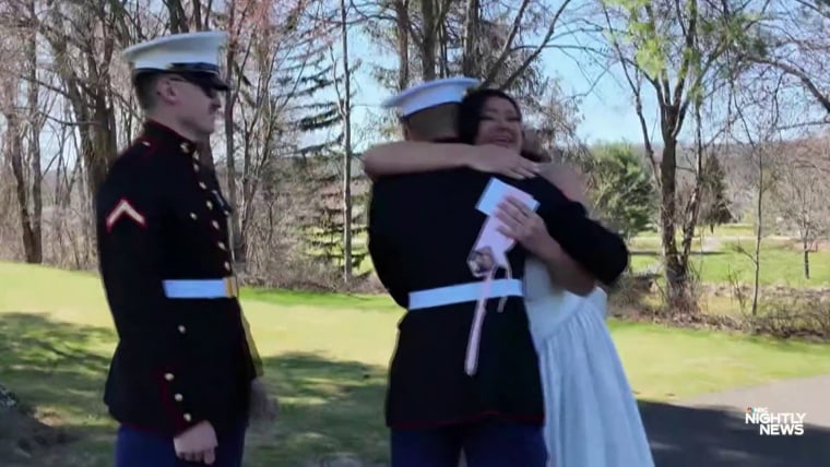 A New Jersey bride prepared herself for the “heartbreaking” possibility her two younger brothers wouldn’t be at her wedding because of their military service. But on the big day, she turned around for a “first look” expecting to see her father. Instead, she found herself face to face with the people she’d hoped most to see: her brothers. NBC Nightly News anchor Tom Llamas reports.April 27, 2026