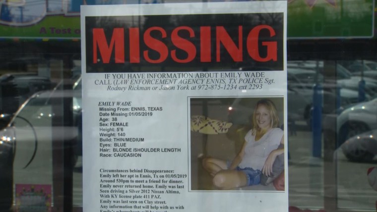 38-year-old Emily Wade was last seen at a friend’s house in Ennis, Texas. Police say they are following up on several leads, but nothing has panned out yet and they are asking for the public’s help to find the missing mother.Jan. 14, 2019