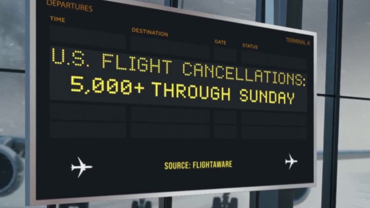 Airlines have already canceled more than 5,000 flights through the weekend, and experts estimate up to 15,000 could be delayed by Sunday. NBC News’ George Solis has the latest on the airports most impacted, and what airlines are saying.Jan. 23, 2026