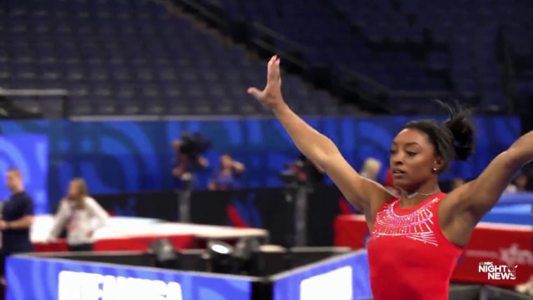 Simone Biles is among the American gymnasts competing this weekend in Team USA's Olympic trials in Minneapolis. For Biles, it would be her third Olympics. NBC News' Stephanie Gosk reports.June 28, 2024