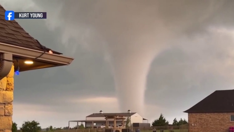 A tornado outbreak left trails of destruction across at least three states. Videos show the scale of the terrifying storms, including a double twister and a view of lightning from a plane. One woman in hard-hit Enid, Oklahoma took us inside her damaged home, showing us how she and her family survived by hiding out in a cement room. NBC'S Ryan Chandler reports.April 24, 2026