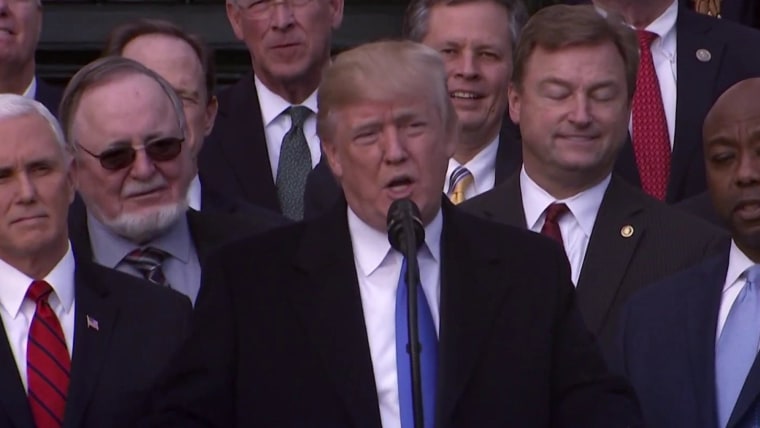 The president applauded Republicans for passing a sweeping tax bill Wednesday, convening lawmakers to take a victory lap on the White House lawn.Dec. 20, 2017