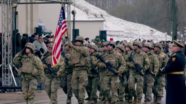 As families across the nation sit around the table, American troops are sacrificing so much this Thanksgiving while deployed. NBC News’ Keir Simmons reports from the Baltics, where more than 1,200 soldiers are part of a NATO show of unity as tensions continue in Ukraine.Nov. 25, 2022