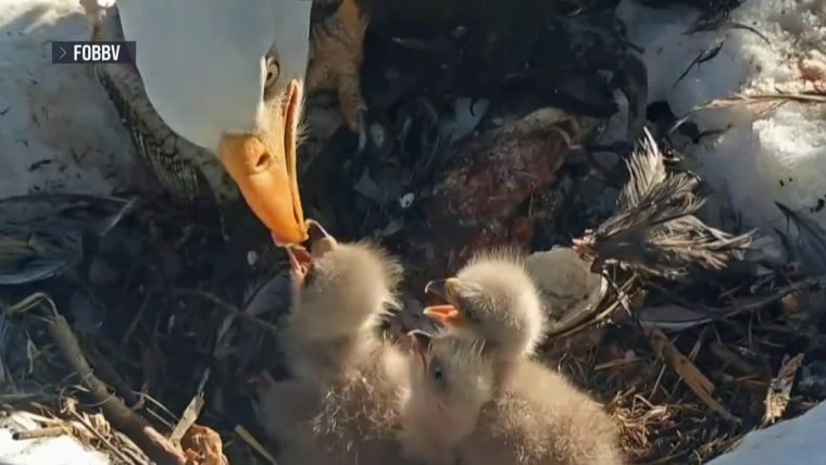 Thousands of people have been tuning in to watch the 24/7 eagle nest cam in Big Bear, California, where bald eagle couple Jackie and Shadow introduced three baby eaglets to the world. NBC News’ Camila Bernal has more.March 9, 2025