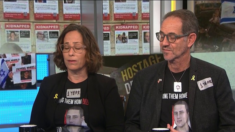 The parents of 22-year-old Omer Neutra, an American taken hostage during the Oct. 7 attacks at a music festival in Israel, spoke with NBC News’ Christine Romans about the need for de-escalation in the war. Ronen and Orna Neutra reflect on one year since they last spoke with their son and why they think Israel can rescue the remaining hostages in Gaza.Oct. 7, 2024