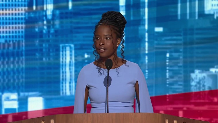 Poet and activist Amanda Gorman recited a new poem at the Democratic National Convention, where she echoed Barack Obama's popular line "the audacity of hope" when she described the American dream. Aug. 22, 2024