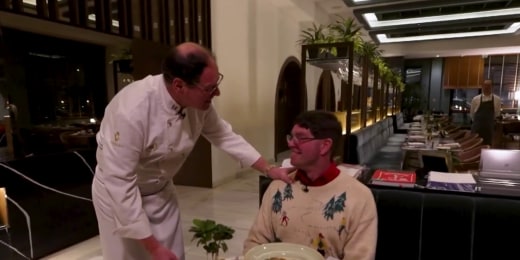 Chris Brust, an American Olympics volunteer, tells NBC News' Claudio Lavanga about his unlikely friendship with Italian chef Carlo Zarri who cooks at the Olympics.Feb. 13, 2026