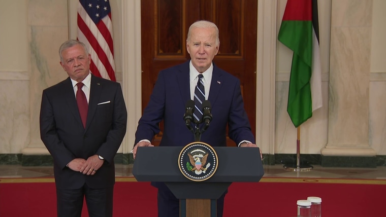 President Biden spoke after meeting with Jordan's King Abdullah II to address the conflict in Gaza and the ongoing hostage negotiations between Israel and Hamas.Feb. 12, 2024