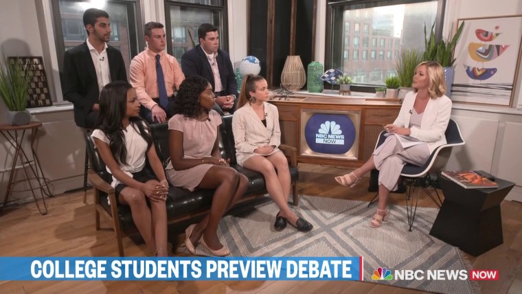 NBC’s Dasha Burns sits with a panel of college students to discuss what they expect to hear from the democratic candidates at the first presidential debate of 2020.June 27, 2019
