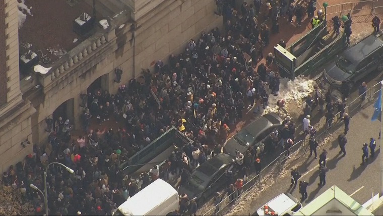 Protests are underway at Columbia University after a student was reportedly detained by ICE agents inside a campus residential building. NBC News' Valerie Castro reports on the circumstances of the detention and comments from the Department of Homeland Security.Feb. 26, 2026