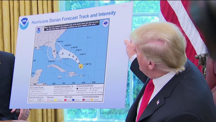Trump tweeted in defense of his assertion that Alabama stood in the path of Hurricane Dorian after media outlets pointed out he altered a map of Dorian’s path. NBC News’ Geoff Bennett reports with the White House’s reaction and if we can expect Trump to face legal scrutiny.Sept. 5, 2019
