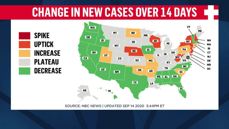 Coronavirus cases are on the rise in at least 11 states. Nationally there has been an improvement with the U.S. now averaging about half as many new cases per day as it was in July. Former Acting CDC Director, Dr. Richard Besser discusses what the start of a second wave could look like.Sept. 14, 2020