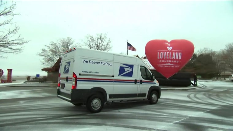NBC News’ Joe Fryer explains how some 100,000 Valentine’s Day cards come through the town of Loveland, Colorado, where volunteers hand stamp them with a sweet message before sending them to their final destinations.Feb. 14, 2020