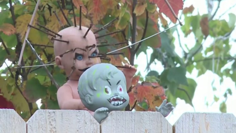 A dispute over property lines in Alaska takes a questionable turn after one neighbor started displaying mutilated doll heads above a fence. NBC News’ Steven Romo has the details. Sept. 1, 2022