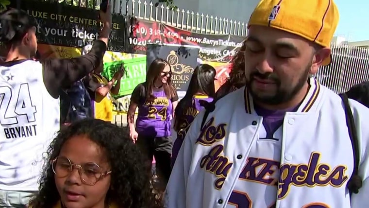Thousands of people filled the Staples Center in Los Angeles to pay tribute to Kobe and Gianna Bryant. NBC News’ Simone Boyce spoke with fans outside the arena about what Kobe meant to them.Feb. 24, 2020