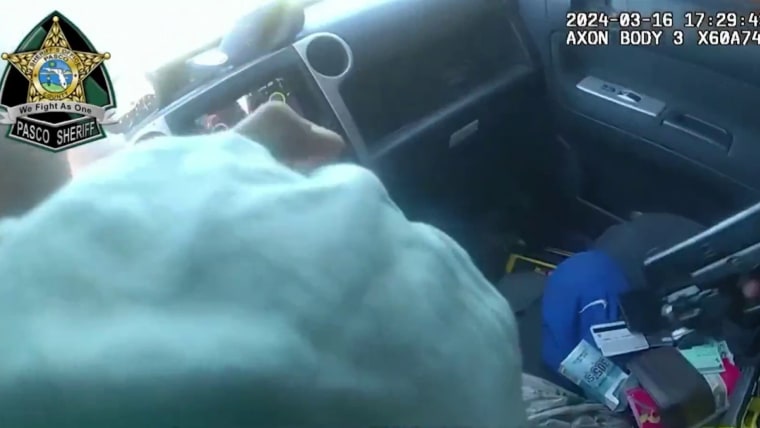 Police body camera footage captured the moments when a suspect, who was wanted for battery, drove off while a Florida deputy was attempting to detain him. NBC News' Steven Romo reports the deputy fatally shot the suspect as he clung onto the speeding vehicle.March 19, 2024