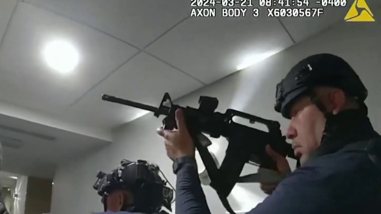Body camera video captured a shootout at a hotel in Fort Lauderdale, Florida, as police attempted to apprehend a man they say was armed and making concerning 911 calls.March 30, 2024