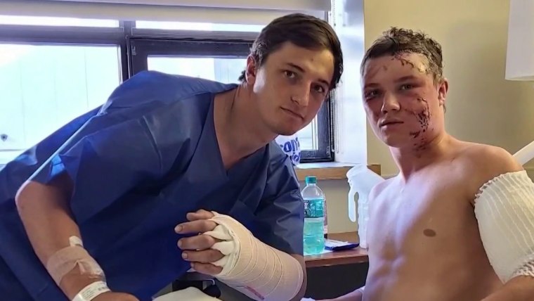Two college students were attacked by a grizzly bear in Wyoming while on an antler-hunting trip with their college wrestling teammates. NBC News’ Niala Charles reports on how this recent attack comes after a Connecticut man saved a 10-year-old boy from the jaws of a 250-pound black bear. Oct. 19, 2022