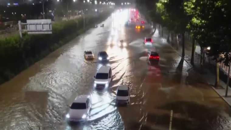 South Korea’s capital region is swapped by heavy rains, turning roads into rivers and trapping those who live in semi-underground homes. NBC News’ Matt Bradley has more on the flooding that is highlighting the city’s housing crisis after at least 10 people were killed. Aug. 11, 2022