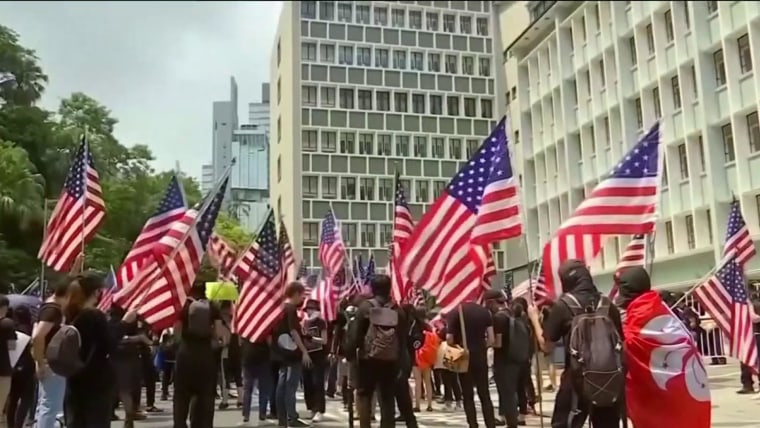 Protestors in Hong Kong have been going strong for 14 weeks, until recently when they turned to the U.S. for help. Carrying American flags, they asked President Trump and Congress to intervene. NBC News’ Matt Bradley is at the scene with more details.Sept. 9, 2019