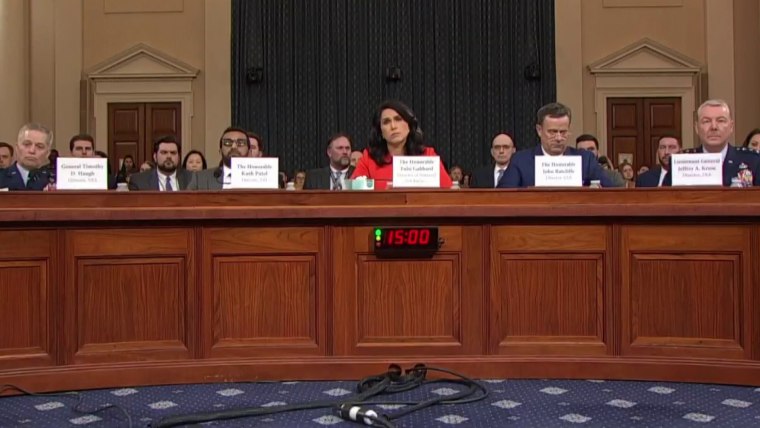 House Democrats’ questioned top intelligence officials over why a journalist was included in a group chat on the messaging app Signal containing plans about military operations in Yemen. NBC News’ Julie Tsirkin reports on how Director of National Intelligence Tulsi Gabbard responded during the hearing on worldwide threats.March 26, 2025
