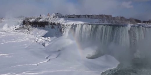 Partially frozen Niagara Falls attracts tourists in below freezing temperatures