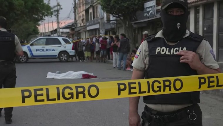 Soldiers walk the streets of Ecuador as schools and stores are closed with the country reeling from violence, all stemming from an internal armed conflict. NBC's Guad Venegas reports on how the drug trafficking issue in Ecuador also affects the United States, as it fuels addiction issues. Jan. 11, 2024