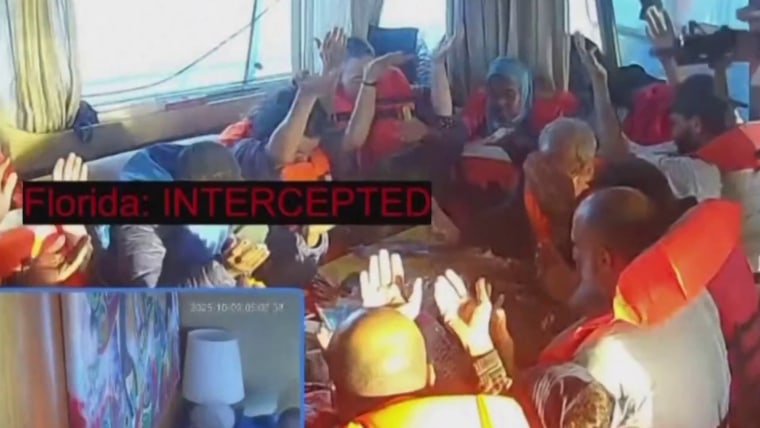 Israeli forces detained hundreds of activists from around the world after intercepting a flotilla of small boats en route to the Gaza Strip. NBC News' Ellison Barber reports on the seizure and what's next for the passengers on board. Oct. 2, 2025
