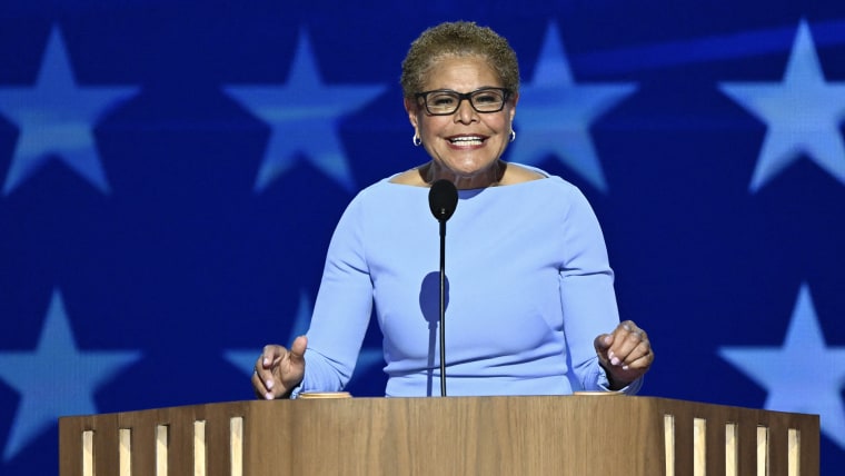 Los Angeles Mayor Karen Bass touted Vice President Kamala Harris’ commitment to the next generation and helping homeless youth. Aug. 20, 2024
