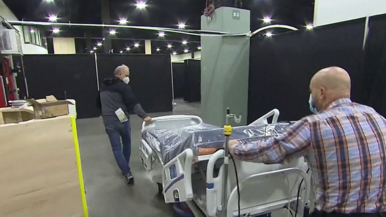 A garage at UMass Memorial hospital is being transformed into a field hospital to care for overflow patients from around the state as Covid-19 cases continue to rise. NBC News’s Antoia Hylton reports.Nov. 24, 2020