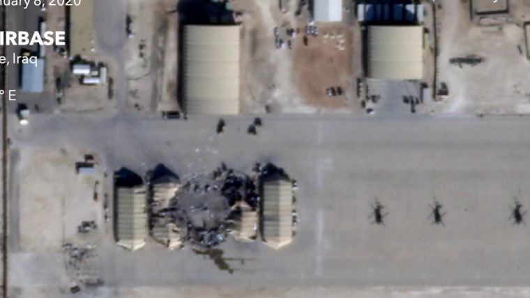 NBC News’ Emmanuelle Saliba analyzed newly released satellite images from the Iraqi military base that was attacked by an Iranian missile strike.Jan. 9, 2020