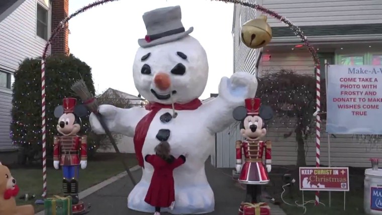 A New York home's 12-foot Frosty the Snowman decoration is a local sensation, but was originally a 1970s Macy's Thanksgiving Day Parade float before being taken in by the Long Island family. Visitors are encouraged to take pictures with Frosty and donate to "Make A Wish." NBC News' Valerie Castro reports on how the family completely refurbished Frosty and even renovated their garage to fit him inside. Dec. 23, 2025