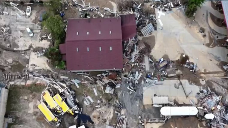 In Asheville, the community most devastated by Helene, local organizations are working to bring relief. NBC News' Tom Llamas spoke with Michelle Coleman, executive director of the Asheville Dream Center, a nonprofit that has become a distribution site in North Carolina. She described the city as looking like a war zone, and says the city has gotten "no help" from the federal government. Oct. 5, 2024