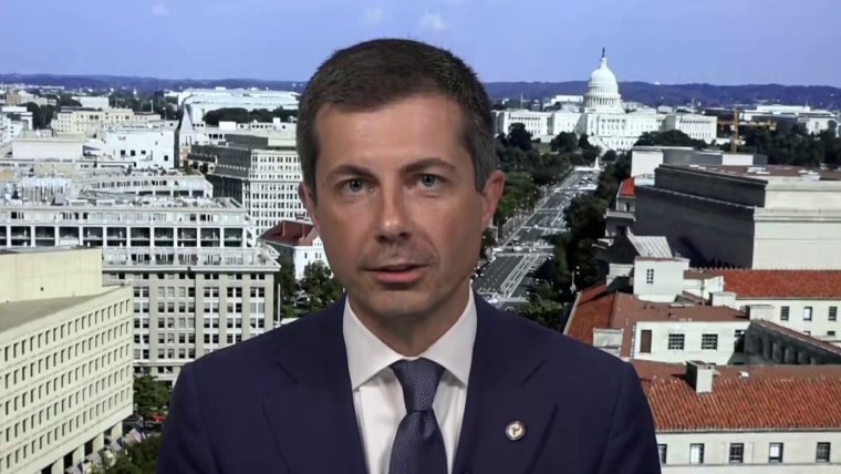 NBC News' Hallie Jackson speaks with Secretary of Transportation Pete Buttigieg and discusses how the Department of Transportation investigation into Delta could lead to significant enforcement action. He also said he’s confident that President Joe Biden can serve the rest of his term and declined to comment on potentially being Vice President Kamala Harris’ running mate or staying in her cabinet.July 23, 2024