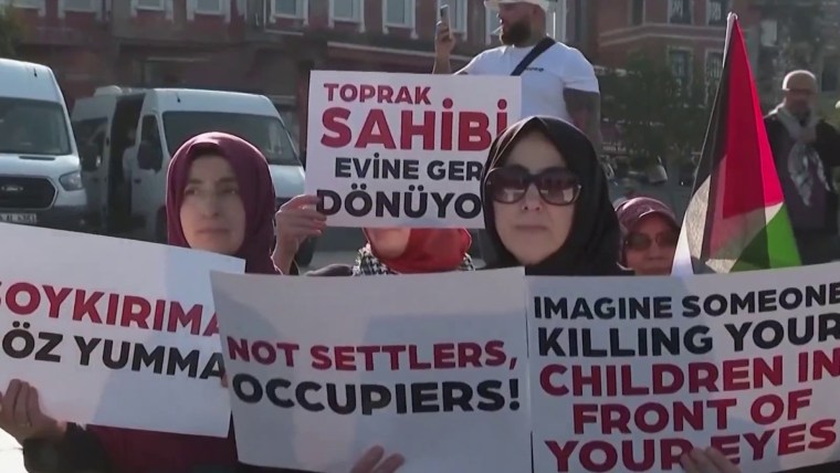 Demonstrators are expressing outrage over the weeks-long bombardment of Gaza as the threat of an additional fight with Hezbollah looms. NBC's Matt Bradley shares the chilling message from the group as well as thoughts from protesters.Oct. 21, 2023