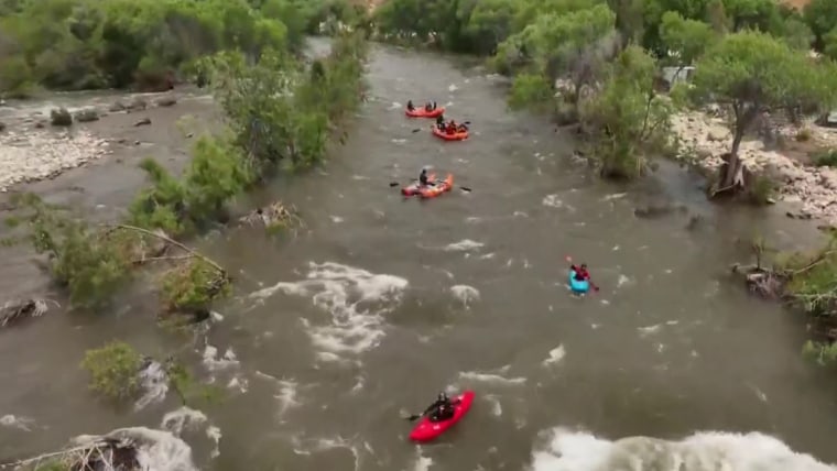 As record-breaking snow from the Sierra Nevada Mountains in California has melted, bringing rivers back to life, whitewater thrill-seekers are rushing to the Kern River to partake in the river rafting. NBC News' Gadi Schwartz goes along for a ride.June 17, 2023