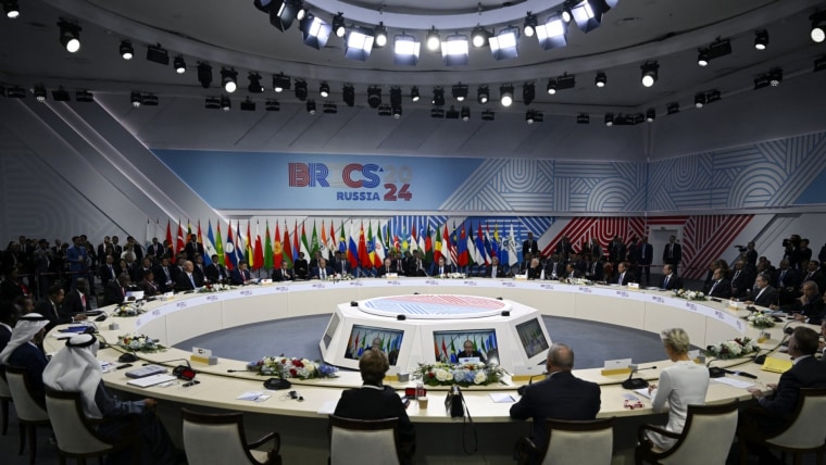 More than 20 world leaders are gathering in Russia for the BRICS summit of emerging economies. The alliance formed as an economic and political counterweight to the West. NBC News' Keir Simmons reports from Russia on the latest news from the BRICS summit.Oct. 23, 2024