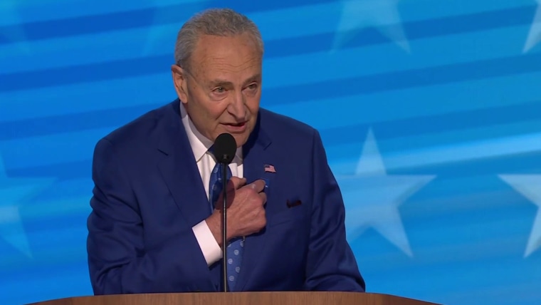 Sen. Chuck Schumer, D-N.Y., voiced his support for Vice President Harris and Democratic Senate candidates at the Democratic National Convention. He also criticized former President Trump for "peddling in antisemitic stereotypes."Aug. 21, 2024