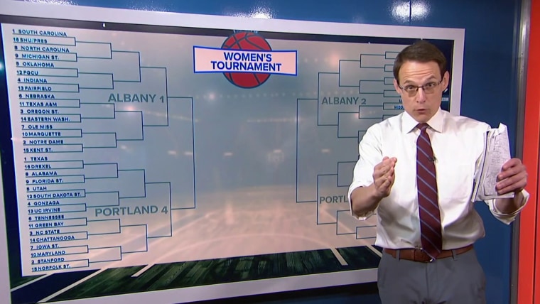 Steve Kornacki broke out his khakis and pen to break down the March Madness brackets for both the NCAA men's and women's basketball tournaments.March 19, 2024