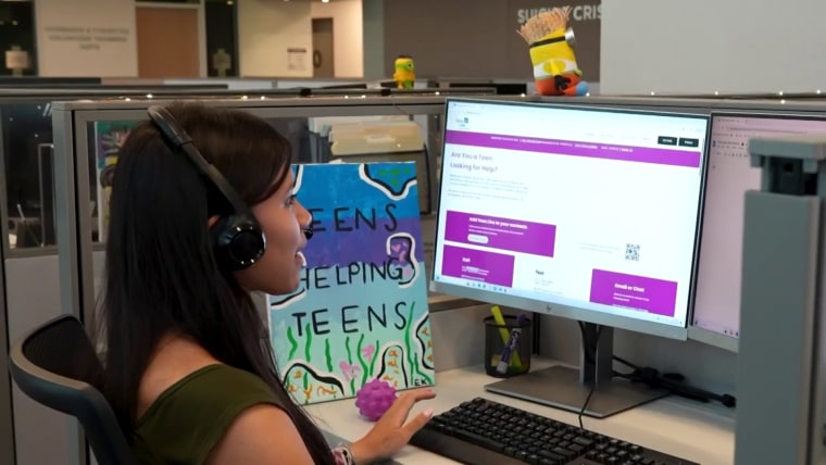 Every night after school, a group of trained teen volunteers gather in the Los Angeles offices of “Teen Line,” a national hotline that connects them with young people in crisis. NBC News’ Camila Bernal visited the young volunteers to find out more.Oct. 1, 2025