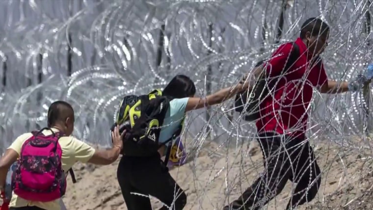 A Texas state trooper is accusing border officials of inhumane treatment of migrants. The allegations claim that Texas officials are being ordered to push migrant kids and others back into the Rio Grande river. NBC News' Julia Ainsley has more. July 18, 2023