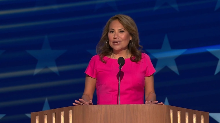Texas Rep. Veronica Escobar spoke at the Democratic National Convention where she criticized former President Trump on his handling of immigration and the border. Aug. 22, 2024