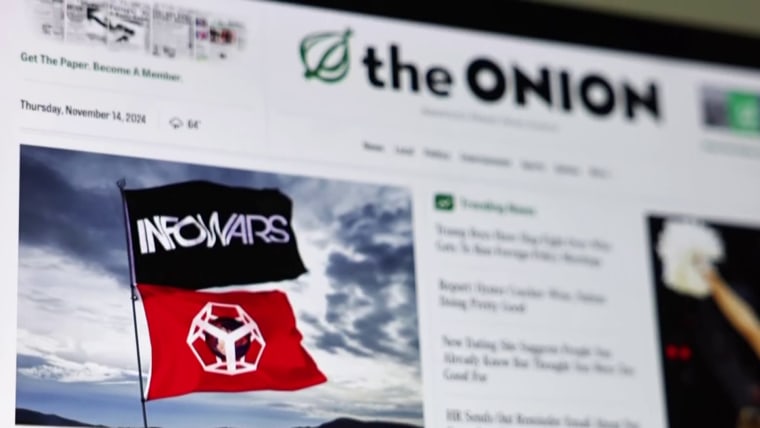 The satirical news site The Onion is working on a new plan to take over right-wing commentator Alex Jones’ controversial platform InfoWars. NBC News' Marquise Francis reports on the licensing deal that The Onion has agreed to with a court-appointed administrator.April 21, 2026